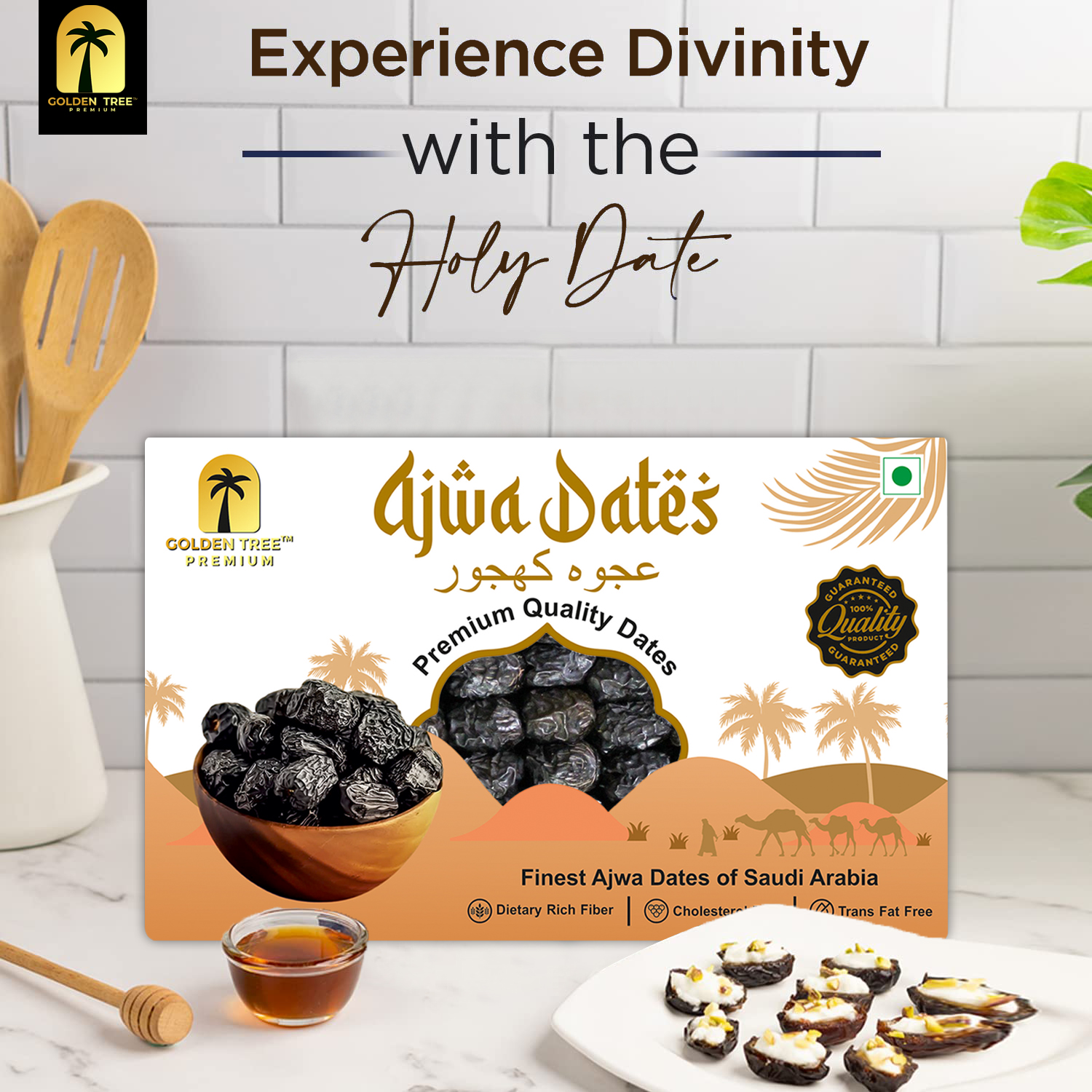 Immerse yourself in the sacred and luxurious taste of Golden Tree Premium Ajwa Dates, celebrated for their unique texture, rich flavor, and deep cultural heritage. Known as the “holy dates,” Ajwa Dates are cherished for their health benefits and unparalleled quality.